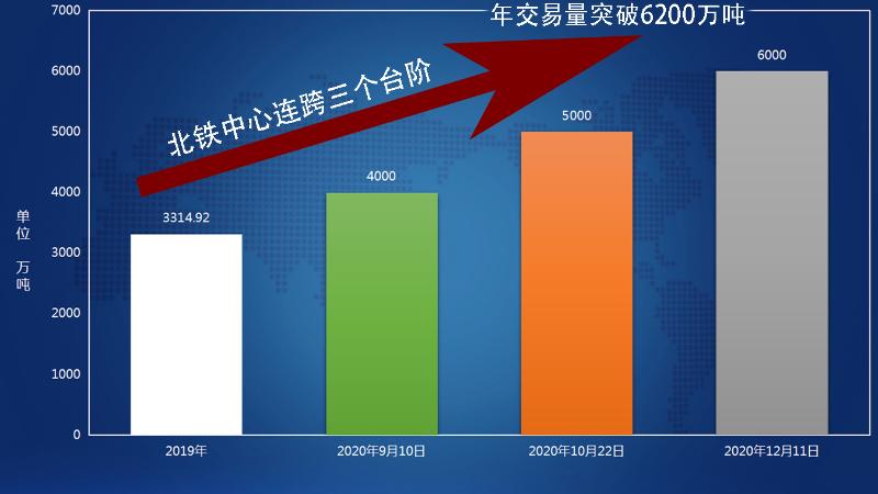 2020年,在國際形勢發生深刻演變、新冠肺炎疫情全球蔓延、全球市場需求疲軟的形勢下,北京鐵礦石交易中心股份有限公司(以下簡稱北鐵中心)迎難而上,加速發展,鞏固了全球第一大鐵礦石現貨交易平臺的領先地位,交出了一份亮點紛呈、振奮人心的答卷:運營的中國鐵礦石現貨交易平臺成交量突破6200萬噸、同比增長89%,會員企業達到460余家、同比增長115%,平臺年交易量及會員數量均達歷史新高。