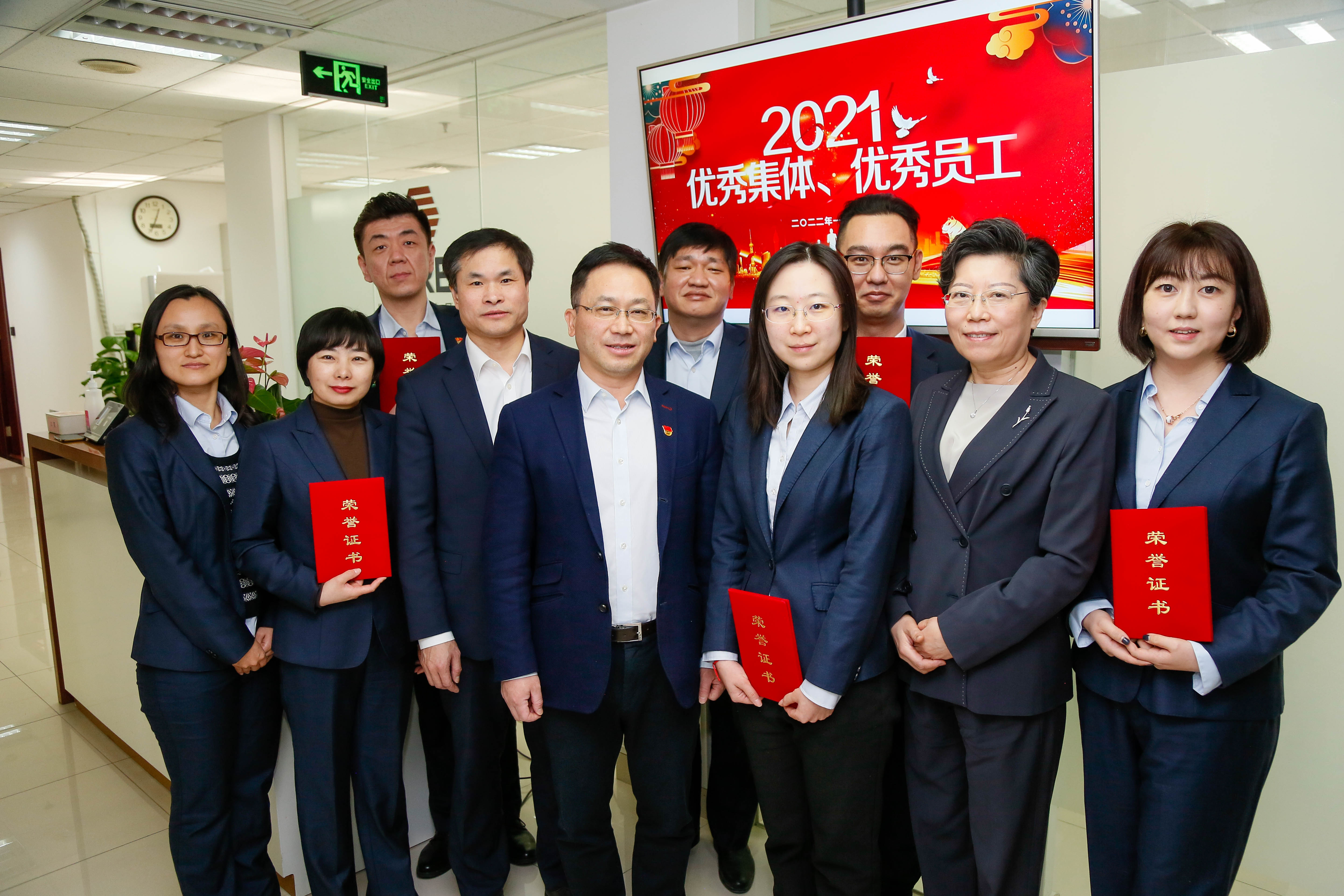 公司領導向受表彰的2021年度優秀集體和個人頒發榮譽證書。