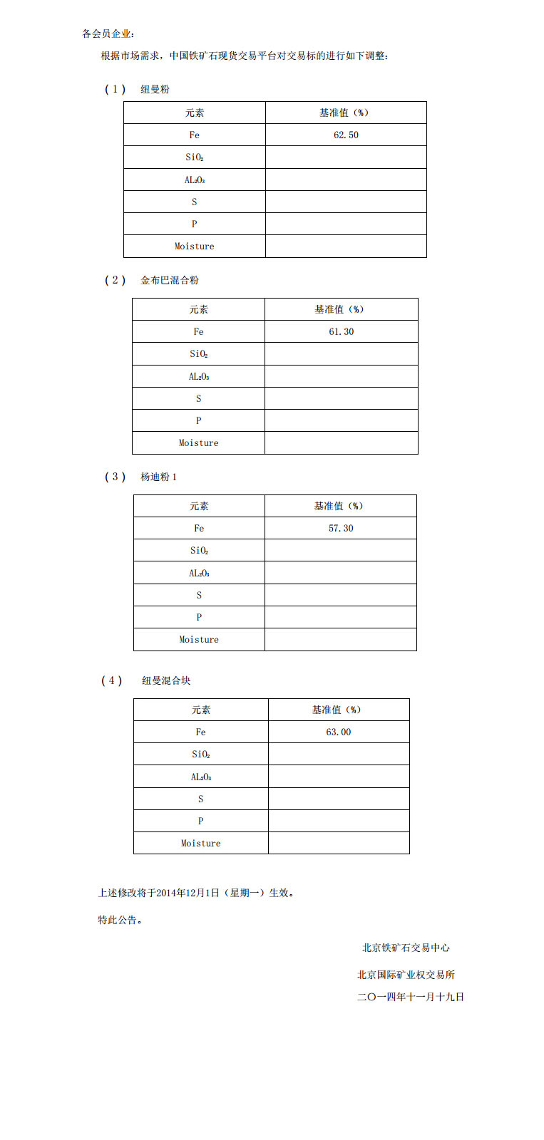 關于中國鐵礦石現貨交易平臺交易服務費收費標準的公告