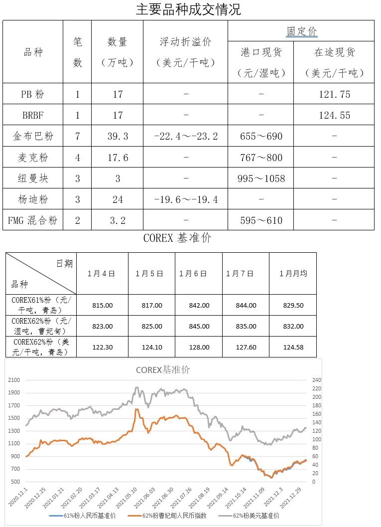 1月3日-1月7日成交38筆共146.92萬噸,其中在途9筆108萬噸,港口29筆38.92萬噸。