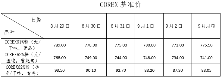 8月29日~9月2日成交94筆共212.17萬噸,其中在途9筆共99萬噸,港口85筆共113.17萬噸。主要成交品種包括:PB粉31筆共80.68萬噸,BRBF 1筆共17萬噸,卡拉加斯粉3筆共1.25萬噸,麥克粉15筆共20.18萬噸,金布巴混合粉7筆8.7萬噸,FMG混合粉8筆共8.2萬噸。