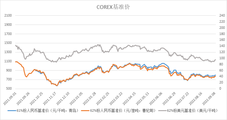 9月5日~9月9日成交108筆共227.67萬噸,其中在途9筆共116萬噸,港口99筆共111.67萬噸。主要成交品種包括:PB粉25筆共58.55萬噸,BRBF 4筆共3.5萬噸,卡拉加斯粉2筆共38.5萬噸,麥克粉8筆共17.7萬噸,金布巴混合粉11筆20.5萬噸,F(xiàn)MG超特粉13筆共17.66萬噸,F(xiàn)MG混合粉8筆共8.61萬噸。